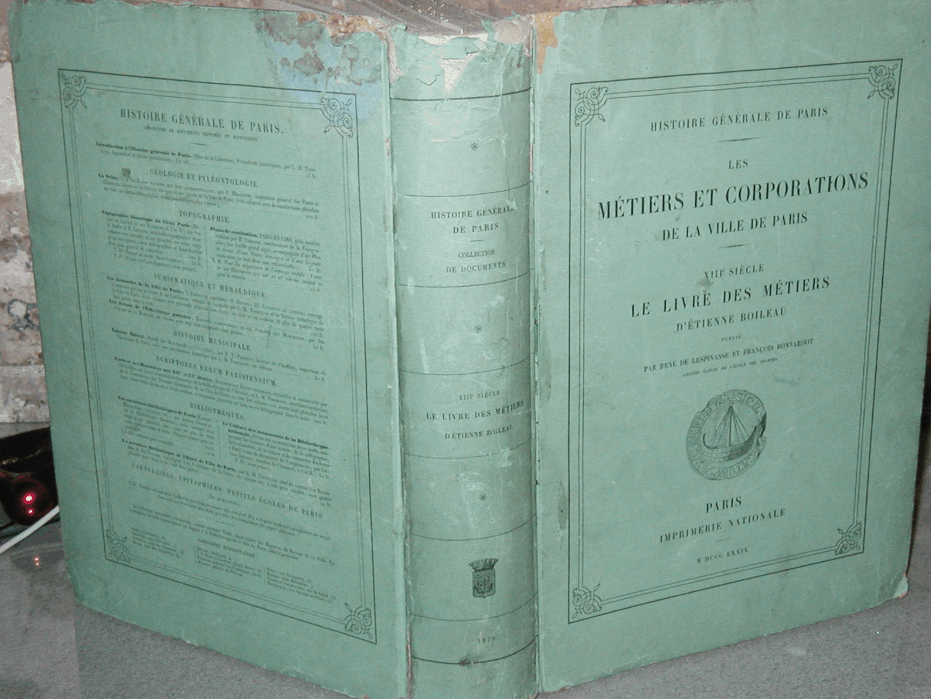 : AUTEUR : Etienne Boileau (1258-1260), Prévôt de Paris de 1260 à 1271. ÉDITEUR : Imprimerie Nationale Date d'édition : 1879 M DCCC LXXIX Régime politique du contexte de