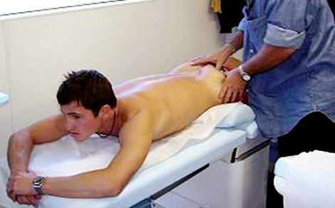 Randy de Puniet Il s'agit probablement ici d'un massage professionnel donné dans le cadre de son activité. C'est un document intéressant au vu du peu de photos que nous avons de sportifs en séance de massage. Non acquise par le CFDRM en 2008 |